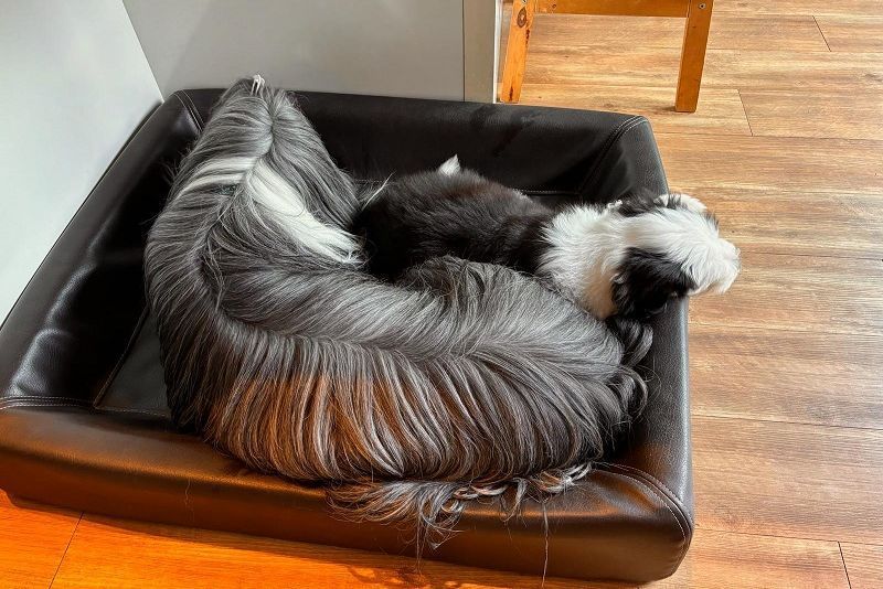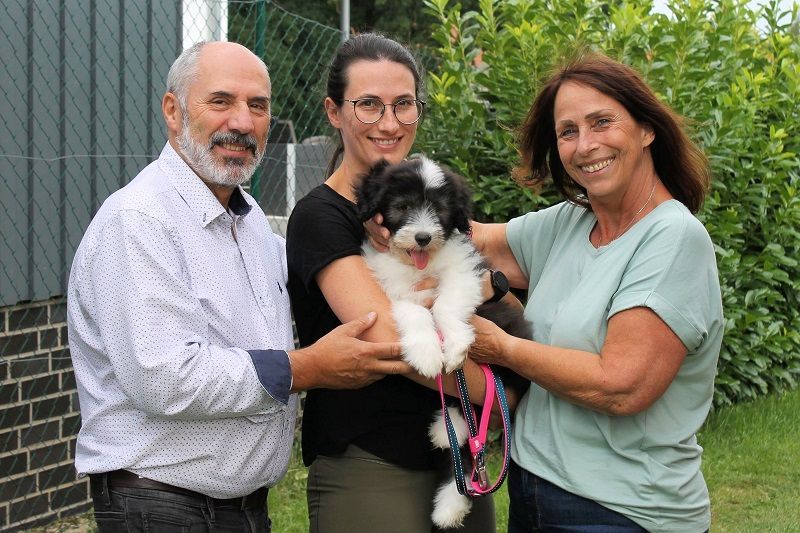 Der süße Aiko ist zu seiner neuen Familie nach Herne gezogen. Unsere lieben Freunde Conny und Heijo hatten 1999 ihren Cooper (Call me Cooper of Snooper-Paradise) aus der Zucht unserer Mutter bekommen. Er war ein stattlicher, souveräner und liebevoller Rüde. Cooper hatte mit den Beiden und ihrem Sohn Robin, ein langes glückliches Leben und hinterließ eine große Lücke. Wir freuen uns deshalb ganz besonders das der liebe Aiko nun in Coopers Fußstapfen treten wird. Als kleines Powerpaket hält Aiko jetzt schon alle in Schwung und liebt besonders seinen großen Garten.