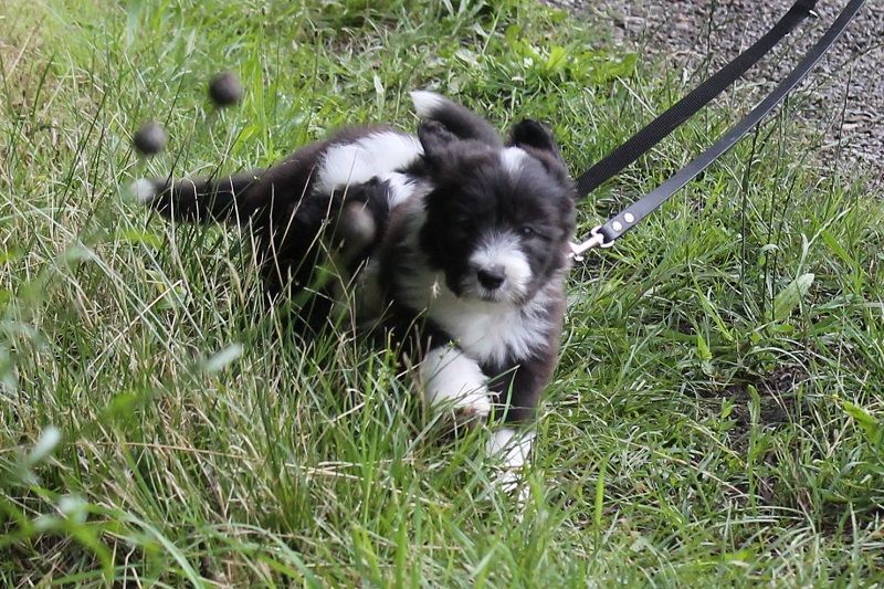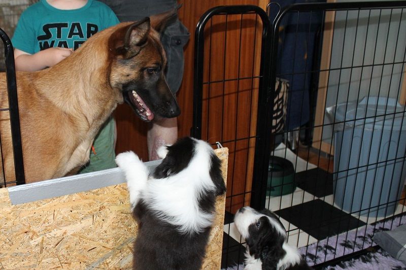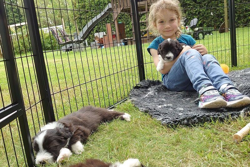 Unsere Welpen sind nun schon 5 Wochen alt. Sie machen sich weiterhin super. Die Welpen sind jetzt sehr viel mit uns im Garten und dort wird mutig alles erkundet und ausprobiert was es zu entdecken gibt. Langsam entwickeln sie auch ihre ganz eigenen Persönlichkeiten. Die Mäuse hatten schon viele liebe Besucher und auch unser Kindergarten war bei uns, um die Süßen kennen zu lernen. Die Kinder sind ganz toll und vorsichtig mit ihnen umgegengen und die Welpen haben die Streicheleinheiten sichtlich genossen. Elfie ist weiterhin sehr fürsorglich und super entspannt mit ihren Kleinen und freut sich natürlich auch immer über unseren Besuch. Über den grünen Button weiter unten könnt ihr euch die neuen Einzelfotos ansehen.