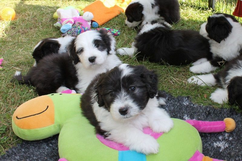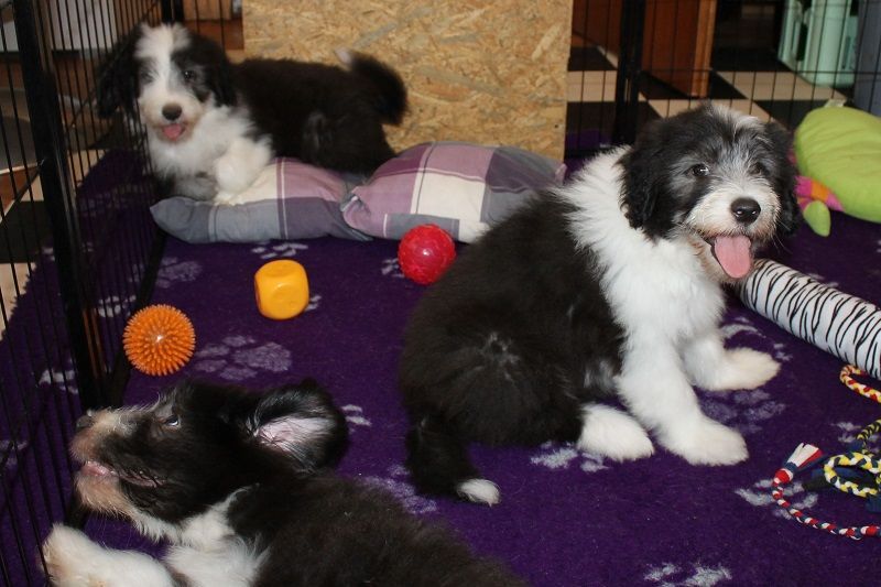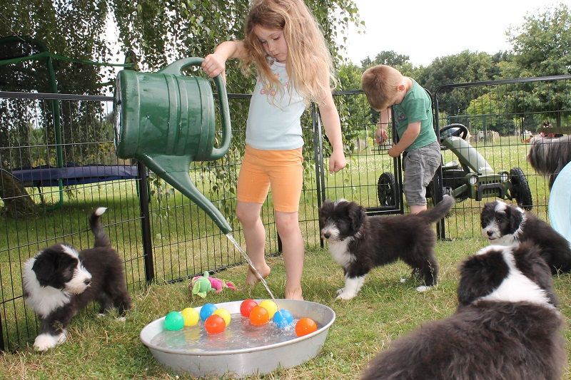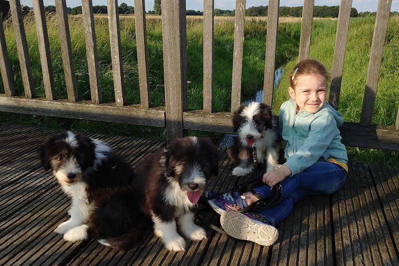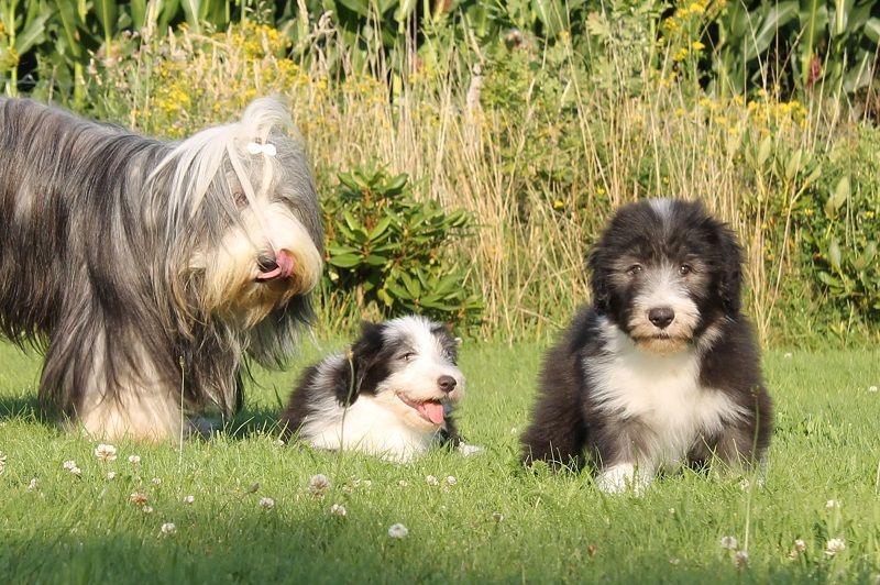 Unsere Beardiekinder sind 7 Wochen alt. Sie entwickeln sich prächtig und haben eine Menge Spaß. Es wird so viel wie möglich erkundet und ausprobiert. Mit den Geschwistern raufen und spielen macht ihnen natürlich auch viel Freude. Die Kleinen haben sich bereits daran gewöhnt eine Zeit lang Halsbänder zu tragen. Wir sind schon mit ihnen Auto gefahren und auch ein Stück spazieren gegangen. Die Bärchen haben alles super toll mit gemacht. Besser geht es wirklich nicht. <3 Eine Hündin und ein Rüde aus diesem Wurf sind noch auf der Suche nach einem tollen Zuhause! Über den grünen Button weiter unten könnt ihr euch die neuen Einzelfotos ansehen.