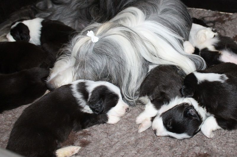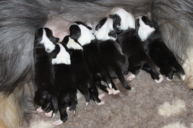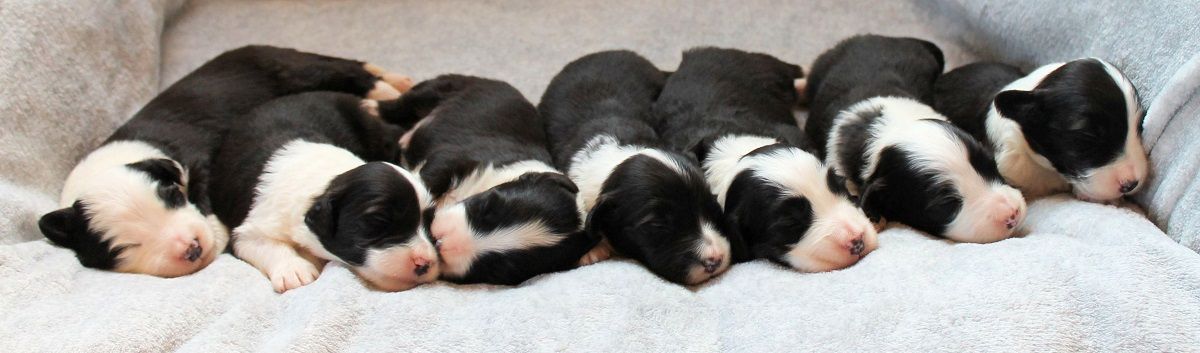 Am Dienstag den 14.05.2024 sind unsere Welpen auf die Welt gekommen. Es sind 3 Rüden und 4 Hündinnen in schwarz-weiß und schwarz-tricolor. Elfie hat die Geburt super gemeistert und kümmert sich liebevoll und ausgiebieg um ihre Babys. Sie verlässt die Wurfbox nur ganz kurz um schnell nach draußen zu gehen, etwas zu fressen oder zu trinken. Den Kleinen geht es auch sehr gut. Sie verbringen den Tag mit Trinken, Schlafen und Wachsen. Mama hat viel Milch und so sind die 7 Zwerge immer satt und zufrieden. Elfie und George haben die Babys wirklich toll hinbekommen. Ganz lieben Dank nochmal an Kerstin Selle! Wir freuen uns riesig über diesen wunderschönen Wurf! :-)